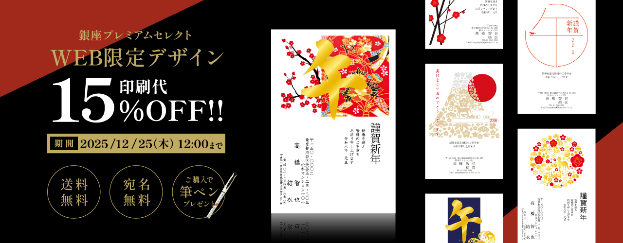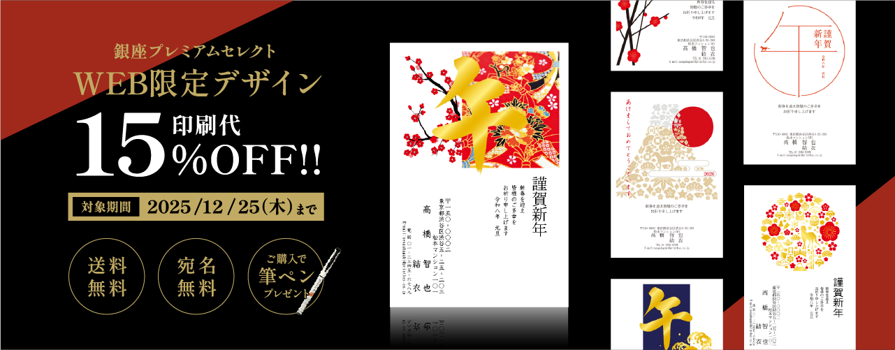 差出人情報の入力、挨拶文や書体を自由に変更いただけます。