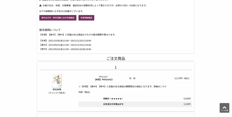 - ①宛名印刷はご注文の流れの途中でご選択いただけます。